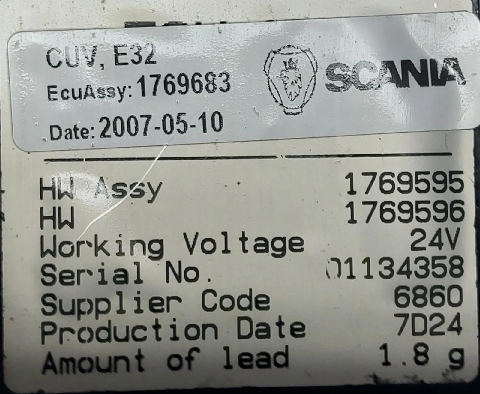 Calculator CUV camion Scania 1769683